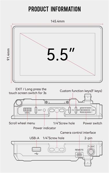 Portkeys BM5 IV WR – 5.5" High Brightness Kamera-Monitor mit Wireless Control